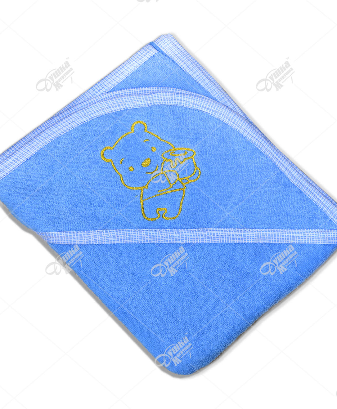 Полотенце с капюшоном выполнено из 100% хлопка, очень пушистое. Хорошо впитывает влагу, благодаря небольшой плотности быстро сохнет. Рисунок "машинной" вышивкой устойчив к истиранию даже после многочисленных стирок. Размер полотенца с капюшоном 75х75 см, окантовано кулиркой в цвет полотенца. Теги: Для детей, Уголки