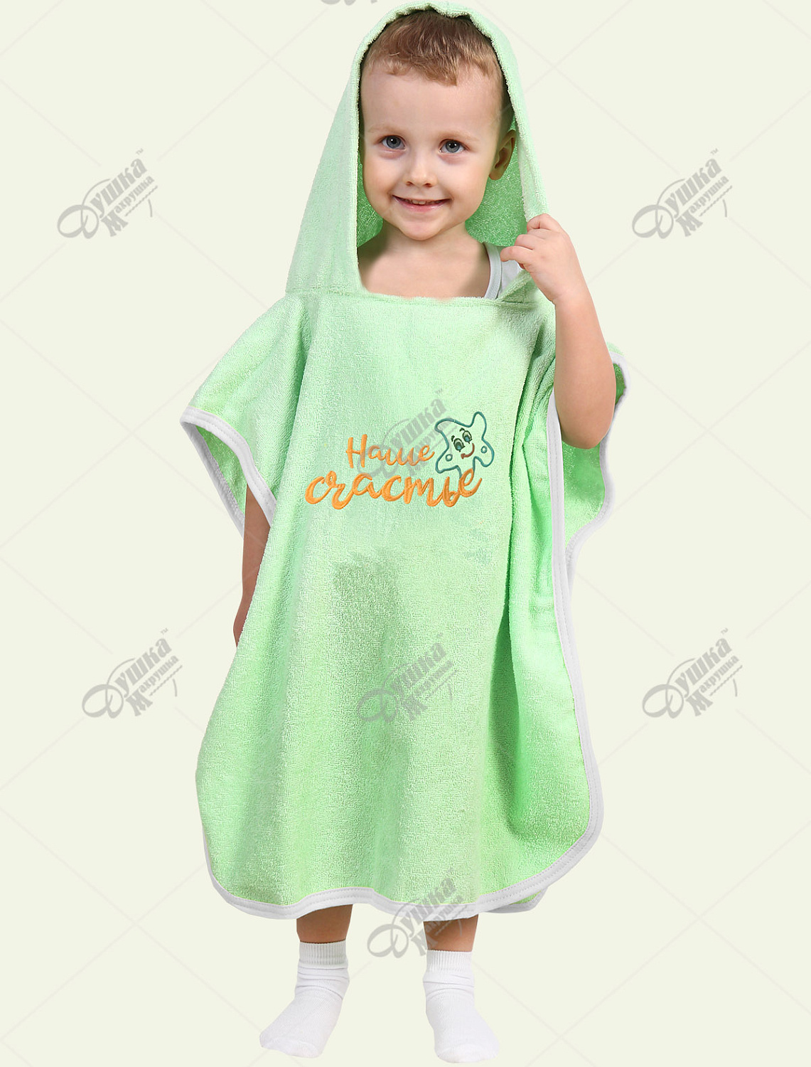 Детское махровое полотенце с капюшоном "наше счастье". Теги: Для детей, Пончо
