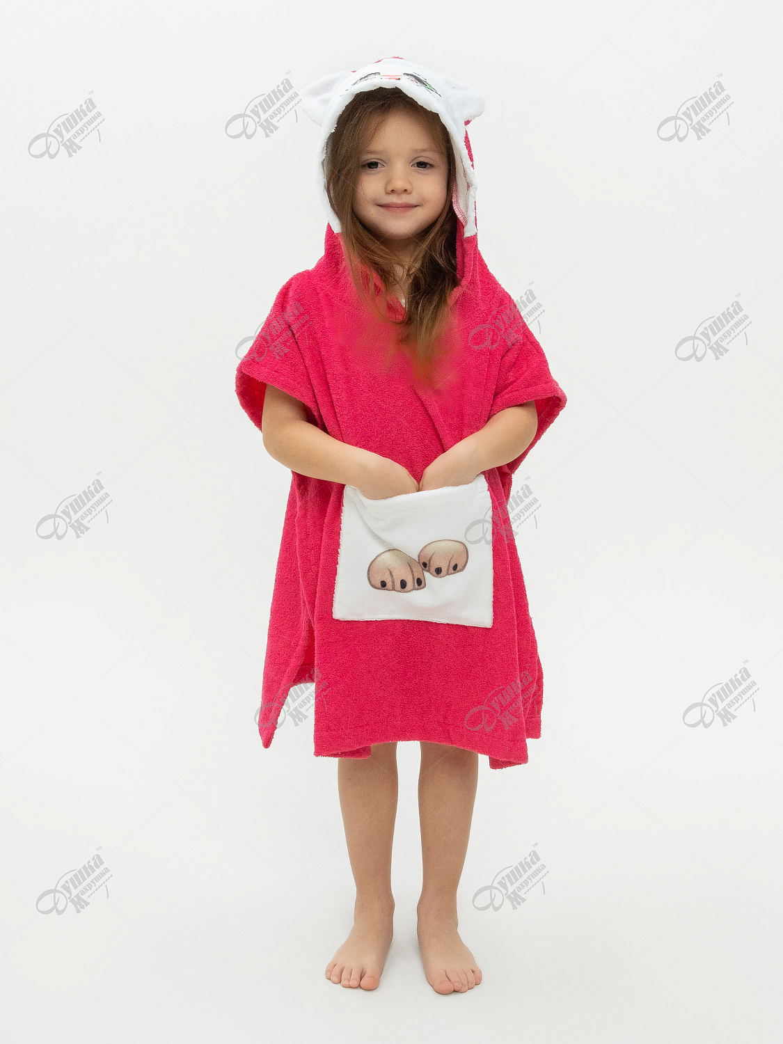 Нарядное детское пончо "Кошечка" малиновое изготовлено из махровой ткани и высококачественной бамбуковой ткани производства Турции. Забавный рисунок нанесен методом печати, благодаря чему не смывается и не теряет яркости красок в течение всего периода использования. Плотность – 300 г/м. Мягкая и легкая ткань отлично поглощает влагу. Пончо не теряет изначального цвета и формы даже после многочисленных стирок в горячей воде. Удобная, практичная и долговечная модель. Теги: Для детей, Пончо