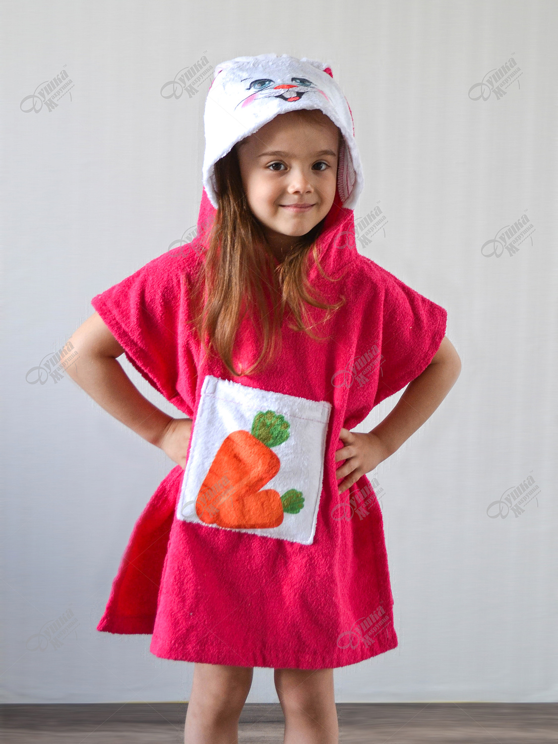 Нарядное детское пончо "Зайка" малиновое изготовлено из махровой ткани и высококачественной бамбуковой ткани производства Турции. Забавный рисунок нанесен методом печати, благодаря чему не смывается и не теряет яркости красок в течение всего периода использования. Плотность – 300 г/м. Мягкая и легкая ткань отлично поглощает влагу. Пончо не теряет изначального цвета и формы даже после многочисленных стирок в горячей воде. Удобная, практичная и долговечная модель. Теги: Для детей, Пончо