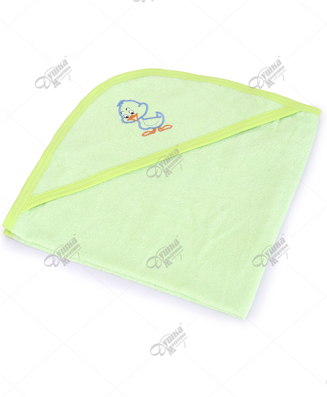 Полотенце с капюшоном выполнено из 100% хлопка, очень пушистое. Хорошо впитывает влагу, благодаря небольшой плотности быстро сохнет. Рисунок "машинной" вышивкой устойчив к истиранию даже после многочисленных стирок. Размер полотенца с капюшоном 75х75 см, окантовано кулиркой в цвет нити вышивки. Теги: Для бани, Уголки детские махровые