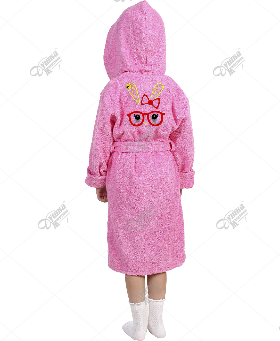 Халат махровый детский с капюшоном и оригинальной вышивкой "Зайка" на спине. Толщина халата позволяет носить его как летом, так и зимой в прохладном помещении, его удобно использовать и как полотенце, есть капюшон с ремешком из аналогичной ткани. Возможно нанесение вышивки любого цвета по желанию заказчика и выбор желаемого цвета халата. Машинная вышивка нитками долговечна и не теряет яркость после многочисленных стирок. Теги: Халаты, Махровые халаты, Детские