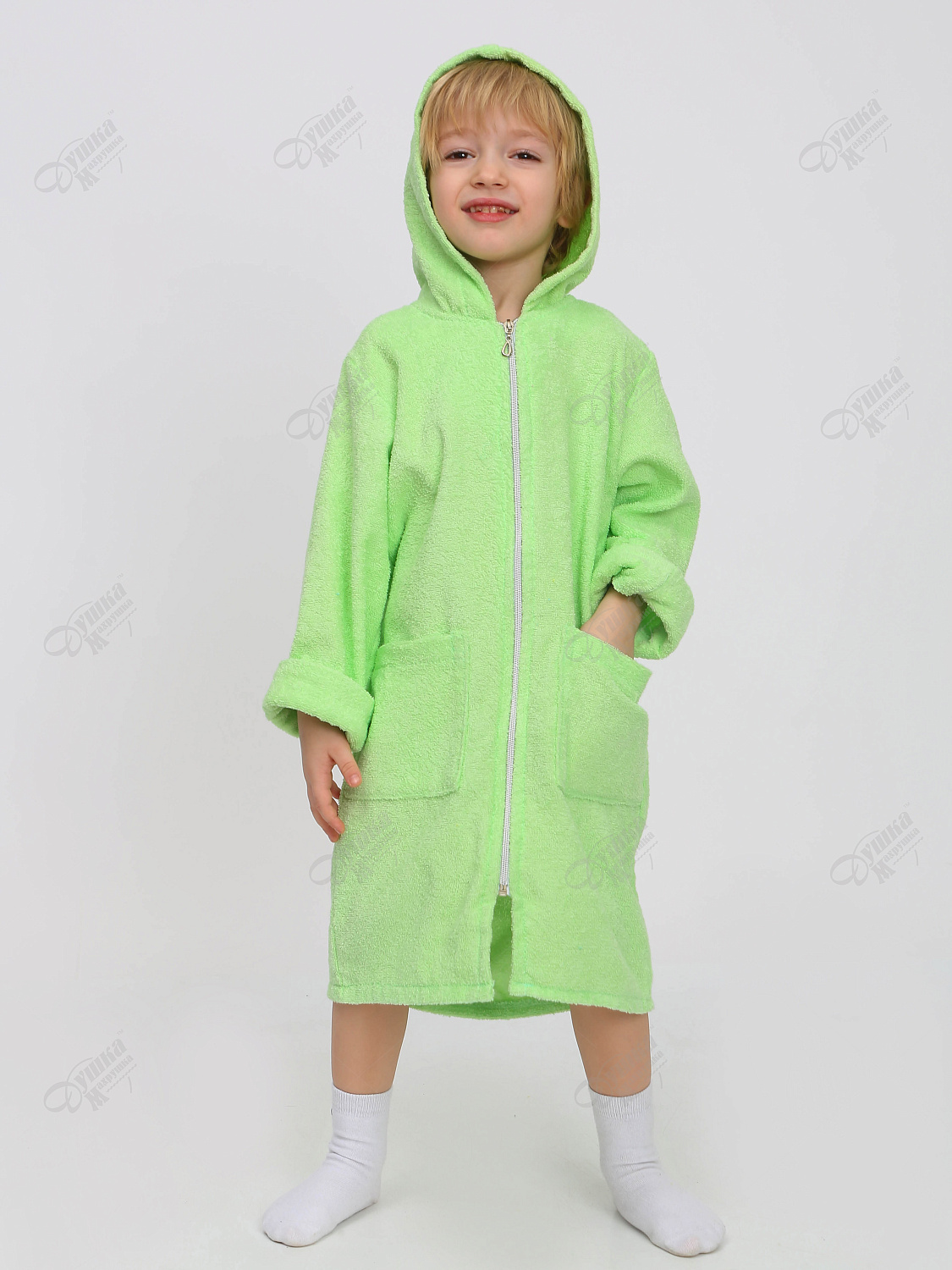 Халат детский без пояса на молнии с капюшоном ниже колена. Для удобства использования молния отстрочена и не защипает ткань. Изделие не линяет, не садится после стирки, прочное и износостойкое. Наличие по размерам и цветам уточняйте у менеджера при каждом заказе. Теги: Халаты, Махровые халаты, Детские