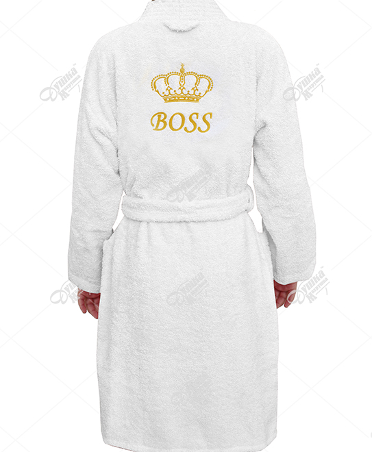 Цвет халата и вышивки может быть любым на ваш выбор. Стиль шрифта и корона будет как на фотографии. Собственная студия машинной вышивки сделает любой халат эксклюзивным и единственным. Машинная вышивка нитками долговечна и не теряет яркость после многочисленных стирок.