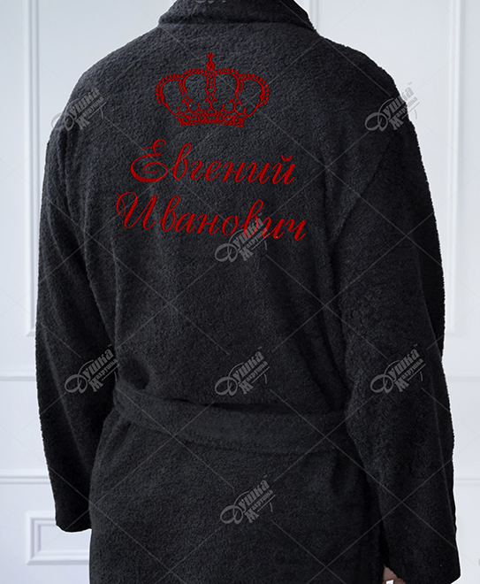 Цвет халата и вышивки может быть любым на ваш выбор. Стиль шрифта Имени и Отчества, корона будет как на фотографии. Собственная студия машинной вышивки сделает любой халат эксклюзивным и единственным. Машинная вышивка нитками долговечна и не теряет яркость после многочисленных стирок.