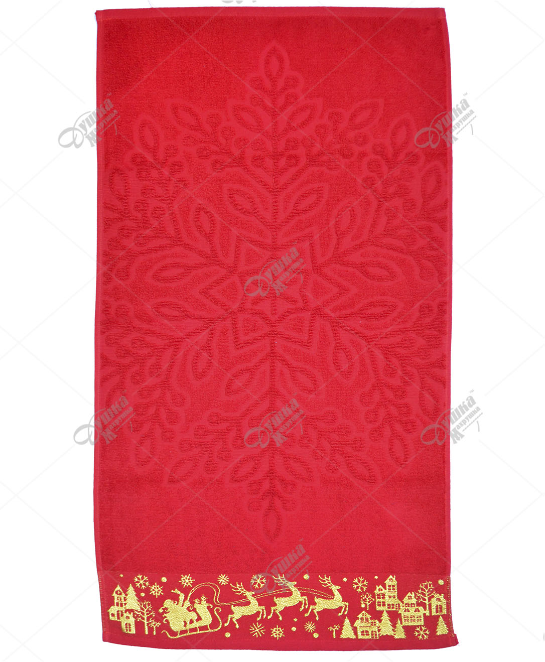Полотенце махровое с новогодней вышивкой в бордюре и рисунком снежинки в структуре махры. Полотенца с вышивкой хорошо стираются, устойчивы к износу и долго сохраняют приятную мягкость. Наличие по цветам уточняйте у менеджера при каждом заказе. Теги: Полотенца, Новый Год