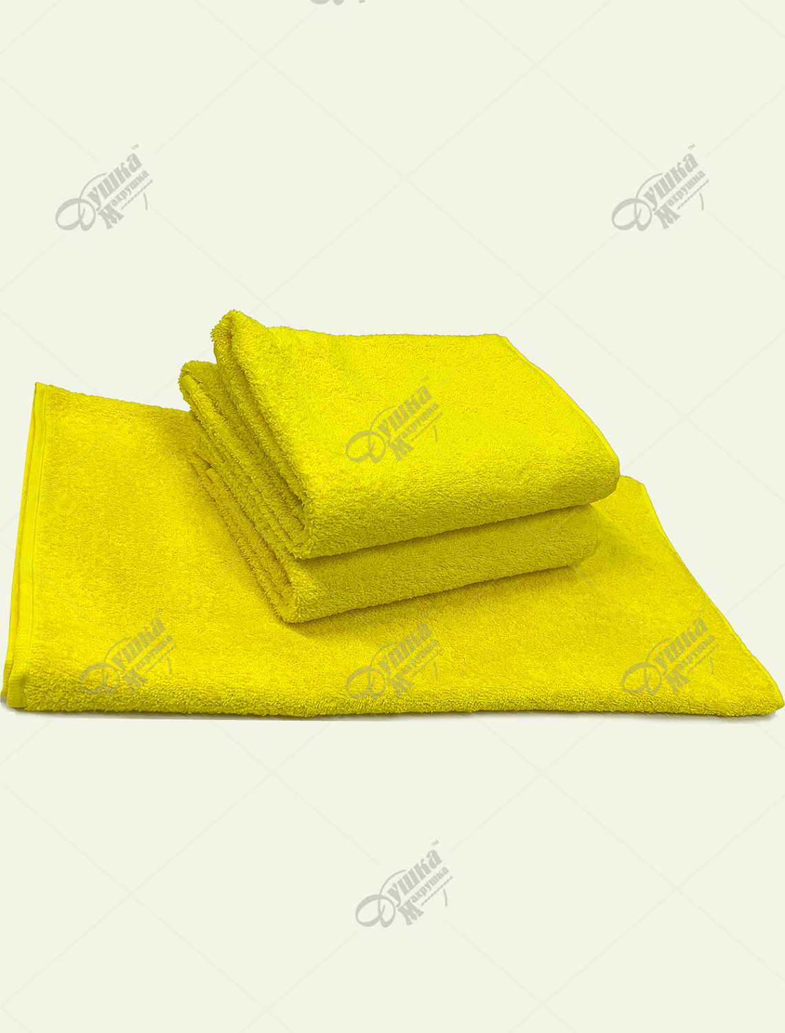 Однотонное желтое без бордюра махровое полотенце производства России изготовлено из 100% хлопка. Плотность изделия 400 г/м². Мягкое, износостойкое, не деформируется даже после многочисленных стирок, хорошо впитывает влагу, не линяет. Гипоаллергенно. Практичный и недорогой вариант для дома, гостиничного бизнеса, SPA-центров. Оптимальный вариант по соотношению цена/качество. Обращаем внимание, что на данную категорию выпускаемой продукции можно нанести вышивку. Наша собственная дизайн студия компьютерной вышивки занимается разработкой дизайна для автоматических вышивальных машин, а также непосредственным нанесением вышивки на махровые изделия. Теги: Полотенца, Однотонные