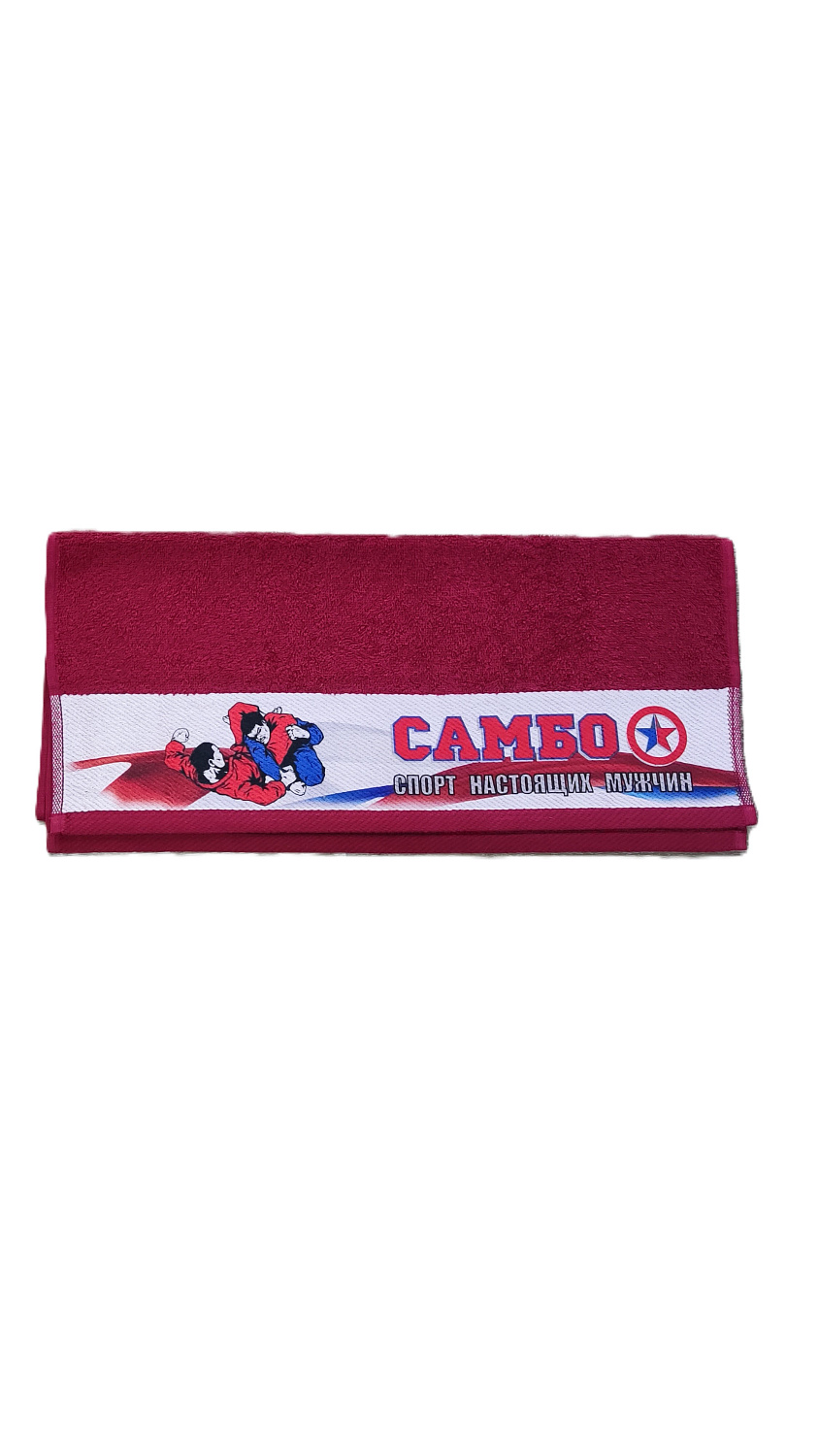 Махровое полотенце с надписью в бордюре бордовое Самбо из 100% хлопка. Полотенца с печатью хорошо стираются, устойчивы к износу и долго сохраняют приятную мягкость. Наличие по цветам уточняйте у менеджера при каждом заказе. Теги: Полотенца, С надписью