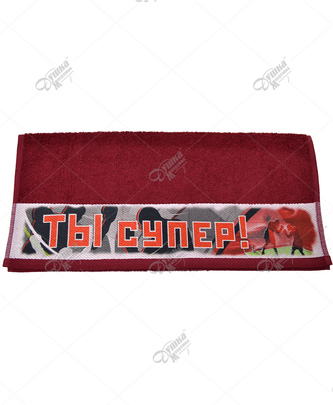 Махровое полотенце гранатовое с надписью "Ты супер!" из 100% хлопка. Полотенца с печатью хорошо стираются, устойчивы к износу и долго сохраняют приятную мягкость. Наличие по цветам уточняйте у менеджера при каждом заказе. Теги: Полотенца, С надписью