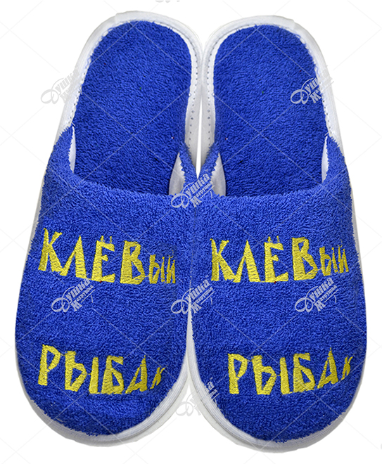 Тапочки с вышивкой "Клевый рыбак". Ткань верха и следа - махровая ткань. Размер 42-43 длина по стельке 290 мм. Размер 44-45 длина по стельке 300 мм. Подошва ЭВА толщиной 4,5 мм. Обращаем внимание, что на данную категорию выпускаемой продукции даем гарантию только на изделие и вышивку. Цвета самих тапок и ниток могут меняться, идут в ассортименте. Теги: Тапочки, Мужские
