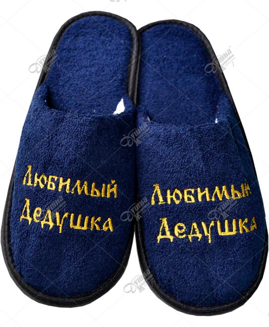 • Тапочки с вышивкой "Любимый дедушка". Ткань верха и следа - махровая ткань.Размер 42-43 длина по стельке 290 мм. Размер 44-45 длина по стельке 300 мм.  Подошва ЭВА толщиной 4,5 мм. Обращаем внимание, что на данную категорию выпускаемой продукции даем гарантию только на изделие и вышивку. Цвета самих тапок и ниток могут меняться, идут в ассортименте. Теги: Тапочки, Мужские