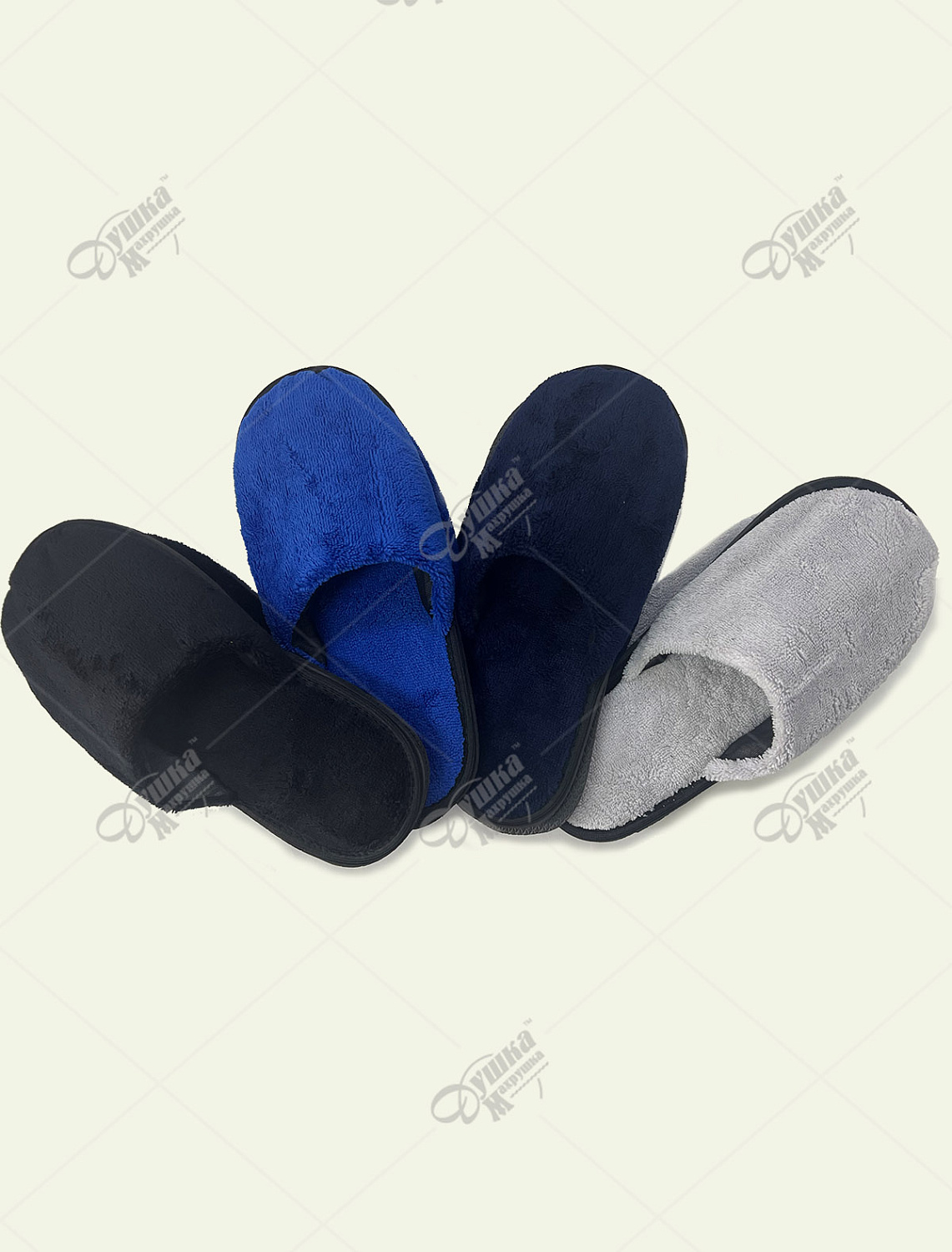 Тапочки велюровые мужские. Ткань верха и следа - махровая ткань. Размер 42-43 длина по стельке 290 мм. Размер 44-45 длина по стельке 300 мм. Подошва ЭВА толщиной 4,5 мм. Обращаем внимание, что на данную категорию выпускаемой продукции даем гарантию только на изделие и вышивку. Цвета самих тапок и ниток могут меняться, идут в ассортименте. Теги: Тапочки, Мужские