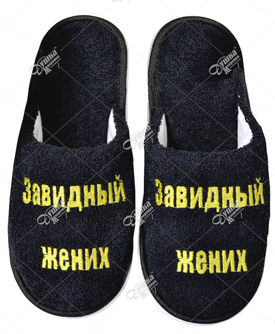 • Тапочки с вышивкой "Завидный жених". Ткань верха и следа - махровая ткань. Размер 42-43 длина по стельке 290 мм. Размер 44-45 длина по стельке 300 мм. Подошва ЭВА толщиной 4,5 мм. Обращаем внимание, что на данную категорию выпускаемой продукции даем гарантию только на изделие и вышивку. Цвета самих тапок и ниток могут меняться, идут в ассортименте.. Теги: Тапочки, Мужские