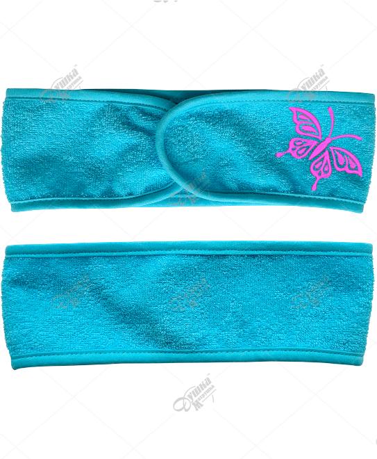 Голубая махровая косметическая повязка с вышивкой. Используется для волос в косметологии и для визажа. Фиксирует волосы и не дает им спадать на лицо во время проведения косметологических процедур или нанесения макияжа. Повязка изготовлена из мягкой махровой ткани, легко фиксируется на липучках, очень приятна и удобна в использовании. Собственная студия машинной вышивки сделает любой изделие индивидуальным. Машинная вышивка нитками долговечна и не теряет яркость после многочисленных стирок. Теги: Текстиль для СПА, Для салонов красоты